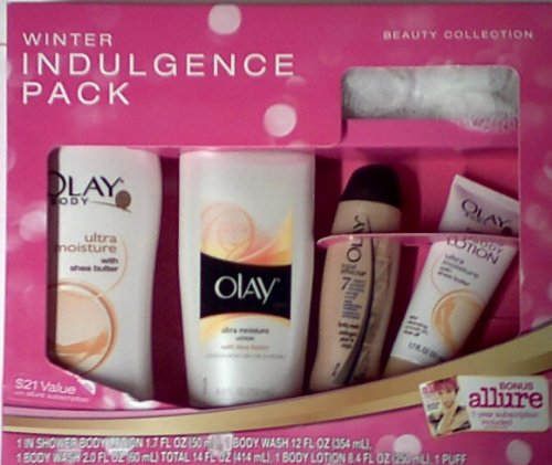 OLAY WINTER INDULGENCE PACK; 1.7 Oz In-Shower Body Lotion, 12 Oz Body Wash, 2.0 Oz Body Wash, 8.4 Oz Body Lotion and 1 Puff Best Price For Sale